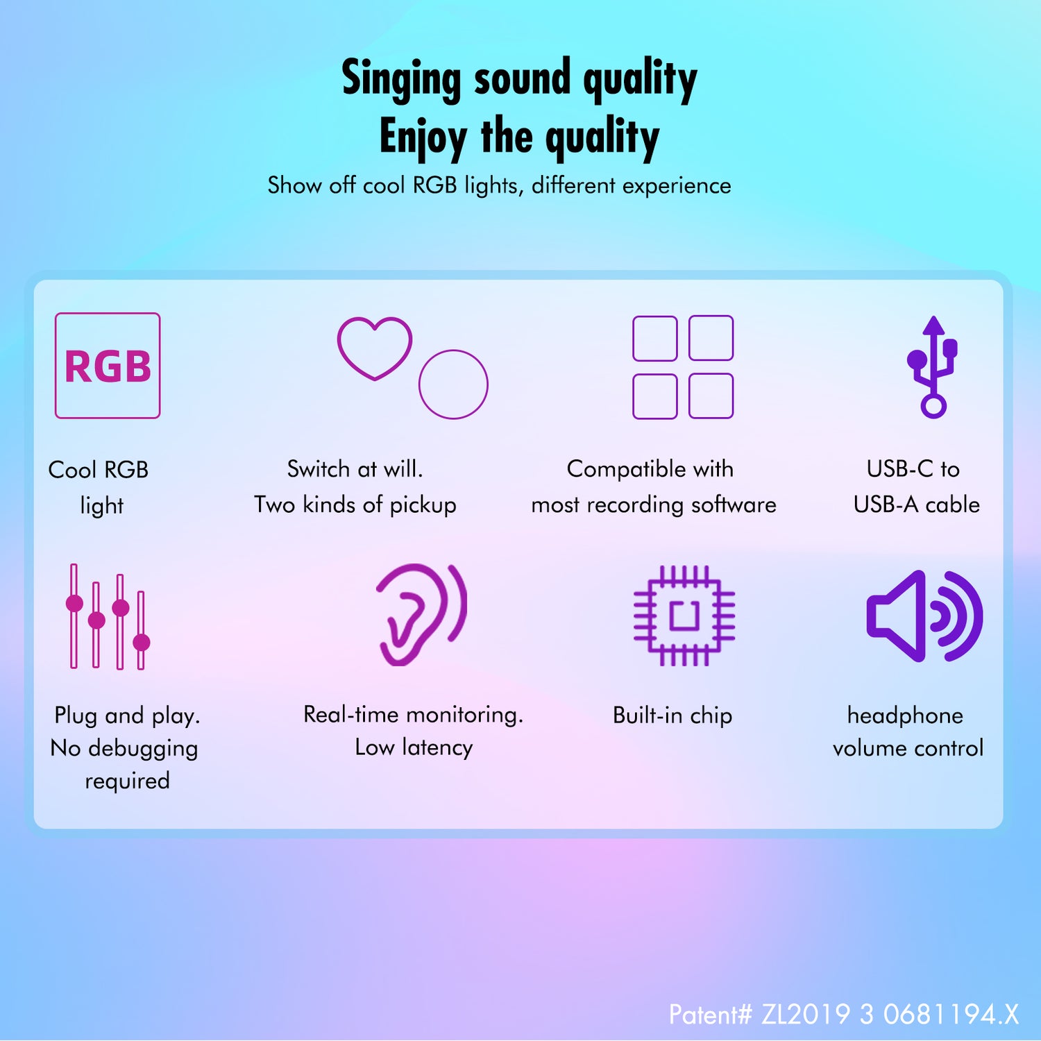 - High quality big condenser microphone unit, Cardioid, super clear sound pickup, perfect for Streaming, Vlogs, Gaming, Podcasts, Voiceovers, Vocals, etc.