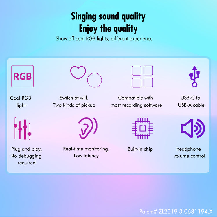 - Patented brand new design, all microphones, pop filter, shock mount and tripod are patent.